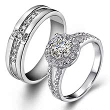 PT950纯银镀白金情侣戒指 男女结婚 仿真钻戒 婚礼时尚对戒 礼物