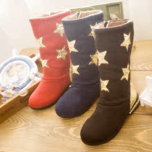 2014秋冬季新款韩版女童靴子亮片星星儿童高筒靴小高跟大童公主靴