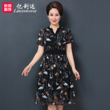 2017新款时尚妈妈装夏装连衣裙中年女装大码雪纺30-40-50岁中老年