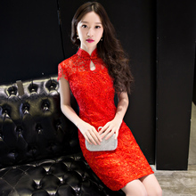 敬酒服新娘旗袍少女夏季2017新款中式婚纱红色结婚礼服女蕾丝短款