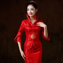 微笑新娘结婚敬酒服旗袍2016新款中式改良结婚礼服红色长款七分袖