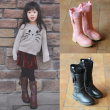 2016冬季新款儿童棉靴 女童真皮中筒长靴 加绒保暖公主流苏骑士靴