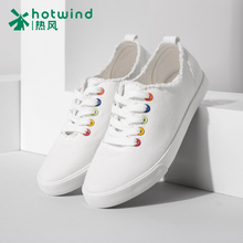 热风夏平底系带透气校园风女士板鞋帆布小白鞋单鞋女H14W6302