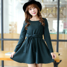 2016秋冬新款格子连衣裙女装韩版中长款修身显瘦时尚a字裙子