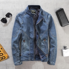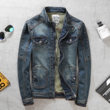 秋冬季加厚牛仔外套男复古潮棉夹克立领加绒牛仔服修身短款上衣褂