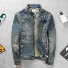 春秋装复古拉链牛仔外套男韩版修身牛仔夹克男装复古牛仔衣牛仔褂