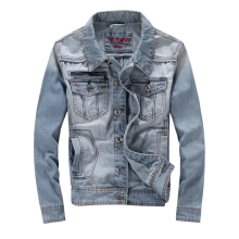 春秋季男牛仔外套韩版修身迷彩牛仔夹克男上衣复古大码牛仔衣服男