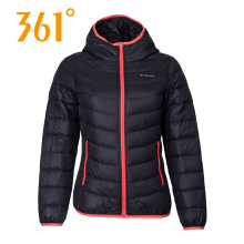 361度羽绒服女2016冬季新款轻薄短款开襟综训361女装连帽运动服DZ