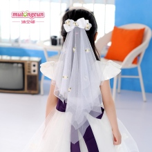 沐仝邨女童公主礼服 花童裙配饰 白色玫瑰花发饰 头花头纱TS84