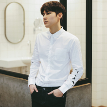 2017春季新款韩版男士印花长袖衬衫 日系潮流休闲修身衬衣男寸衫