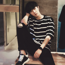 2017夏季男士条纹圆领短袖t恤 韩版潮流宽松简约半袖体恤海魂衫男