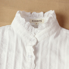 秋装新款小清新森女系文艺蕾丝立领提花棉长袖衬衫女装衬衣