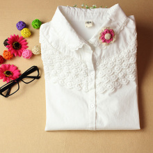 春秋款甜美森女系小清新文艺蕾丝花边纯棉长袖衬衫女衬衣