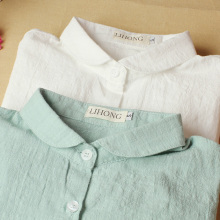春装新款小清新文艺小翻领棉麻舒适休闲长袖衬衫女装亚麻衬衣