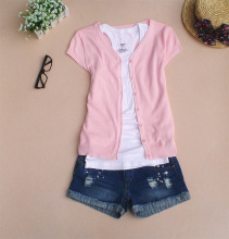 夏日女装百搭糖果色全棉短袖开衫针织衫 防晒小披肩纯棉空调衫