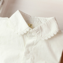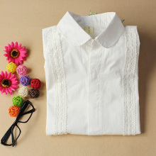 秋装新款小清新文艺森女系纯棉蕾丝花边娃娃领长袖衬衫女打底衬衣