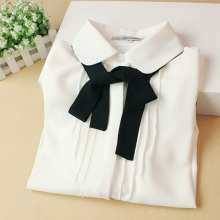 春装新款蝴蝶结甜美娃娃领飘带雪纺长袖衬衫日系打底白衬衣女