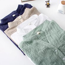 夏装新款文艺日系宽松立领棉麻七分袖防晒衬衫女装薄款亚麻衬衣