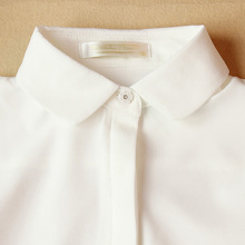 春秋韩版纯色简约娃娃领雪纺长袖衬衫女装彼得潘领打底白衬衣