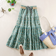 夏日波西米亚田园花色亚麻半身裙棉麻沙滩裙长裙女
