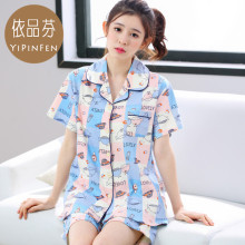 纯棉短袖短裤睡衣女夏天大码开衫学生清新家居服两件套装韩版宽松