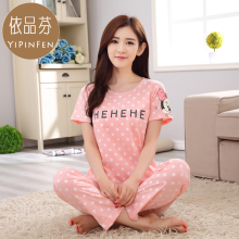 睡衣女夏韩版清新学生两件套可外穿夏季短袖套装七分裤夏天家居服