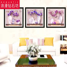 粘钻DIY钻石画方钻满钻十字绣紫白粉色花卉三联画客厅贴钻绣书房