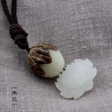 木兰 复古森女手工原创白玉雕刻莲花菩提文艺小清新项链 禅意A32