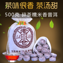 老仓茶叶云南普洱茶 熟茶碎茶糯米香普洱茶500克迷你小沱茶