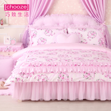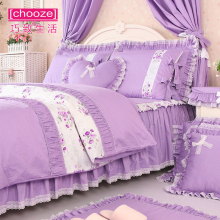 紫色公主四件套1.8m床裙款纯棉床上用品三件套被套定做床笠