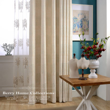 米色唯美田园复古浮雕幸运树加厚棉麻卧室客厅儿童房书房窗帘定制
