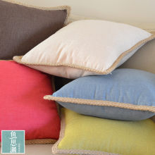 出口外贸美式法式麻绳边编织纯色素色样板房棉麻抱枕靠垫套不含芯