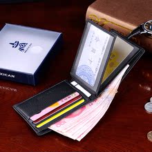 Mexican/稻草人新款钱包男短款拉链男士驾驶证钱夹休闲真皮零钱包