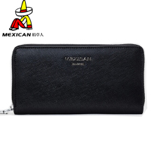 Mexican/稻草人男长款拉链钱包真皮男士手包商务休闲潮男式手拿包