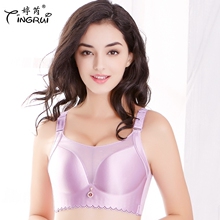 婷芮新品健康无钢圈文胸一片式无痕大码聚拢调整型性感光面四排扣