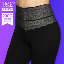 决定假透肉打底裤加绒加厚女冬棉裤大码修身高腰蕾丝网纱裤防勾丝