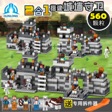 群隆星将我的方块世界拼装积木小颗粒城墙守卫小男孩拼插积木玩具