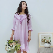 复古蕾丝宫廷家居服中袖纯棉睡裙女春秋大码荷叶边领公主睡衣宽松
