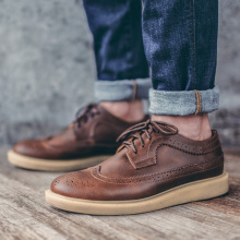 男士鞋子春秋季休闲鞋潮男鞋男真牛皮鞋男英伦布洛克雕花低帮潮鞋