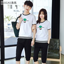 2017夏季新款男女休闲运动两件套装春夏圆领t恤短裤修身情侣装潮