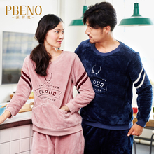 派邦奴2016秋冬季情侣珊瑚绒睡衣女冬长袖加绒加厚男家居服套装