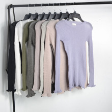 一凡外贸 圆领高弹力镂空透视木耳袖边小性感长袖针织衫