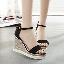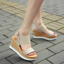 2017新款凉鞋女夏坡跟厚底女鞋高跟防水台磨砂凉鞋女韩版松糕底