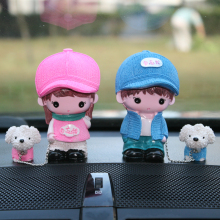 汽车摆件可爱创意玩偶情侣娃娃遛狗车载车内饰品用品卡通公仔