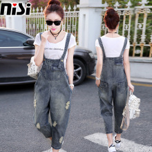 2017夏装新款韩版牛仔背带裤女宽松连体裤吊带哈伦裤九分休闲裤潮