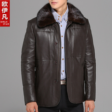 水貂内胆皮毛一体皮衣男头层牛皮海宁皮草男装翻领男士真皮夹克冬