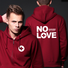 卫衣男秋冬加绒加厚 阿姆NO LOVE印花纯棉外套嘻哈大码连帽拉链衫