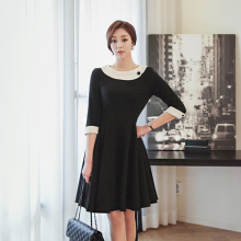 新款女士春夏裙2017 韩版中长款七分袖大摆连衣裙修身显瘦a字裙