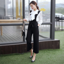 春夏新款时尚流行高腰背带裤休闲裤潮流九分阔腿裤显瘦百搭女裤