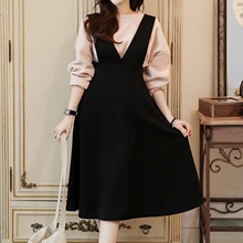 背带裙两件套女学院风毛呢厚显瘦韩版大摆秋冬长裙V领连衣裙套装